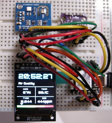 Smart Cyber Clock V2 2026.03.31 CSピンの無いST7789ですがブレッドボードに組んでみたところちゃんと表示できました。 加速度センサーで90度回転させると表示も変わります。相変わらず湿度・温度は高めに表示しています。 Smart Cyber Clock Smart Cyber Clock V2 動作確認が出来ましたまたまた動作確認だけで終わってしまいそうです。 CSピンの無いST7789 単体ではライブラリーのスケッチ例での表示はまだ出来ていません。