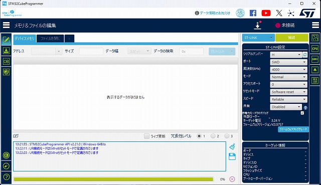 STM32CubeProgrammer をインストールしてみました。ところが ST-Link V2 を認識してくれません。