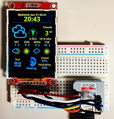 以前購入した ATOM Lite これも ESP32 のお友達なので TFT_eSPI_OpenWeather をインストールしてみました。画像・アイコンの一部表示されません。