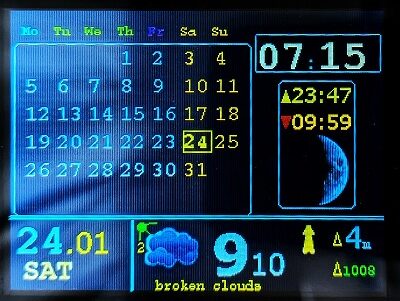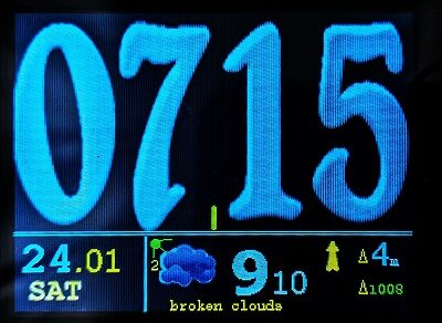 表示は上手くいきましたがTIMEZONEの設定が出来ていませんので時計があっていません。TIMEZONEの修正と正しい表示が出来ているか課題は残っています。